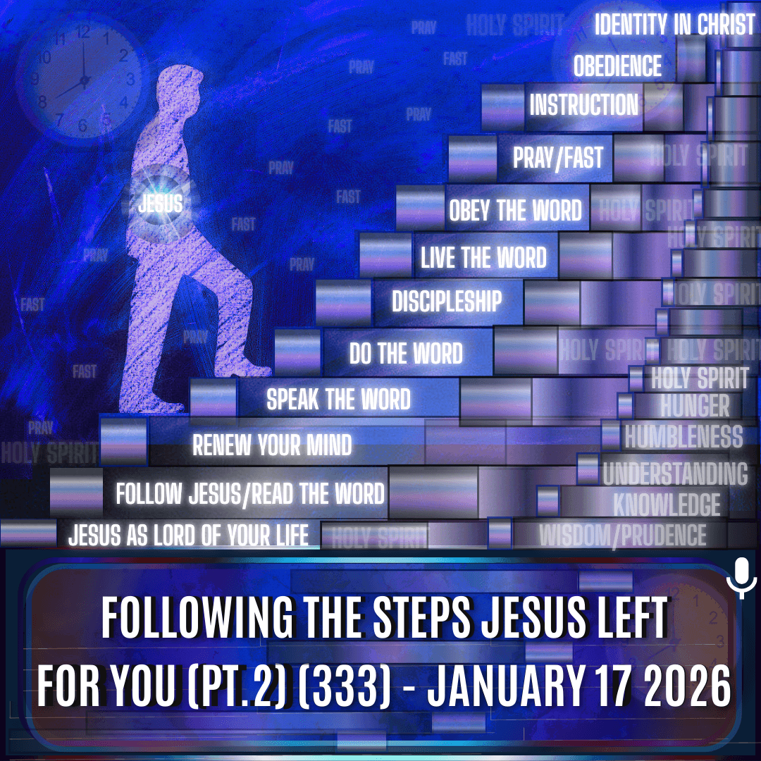 Read more: Following The Steps Jesus Left For You (Pt.2) (333) – January 17 2026When we follow the steps of Jesus, we are not walking in our own strength. Jesus went before us and prepared a way. This way we just follow Jesus and do not have to figure things out.